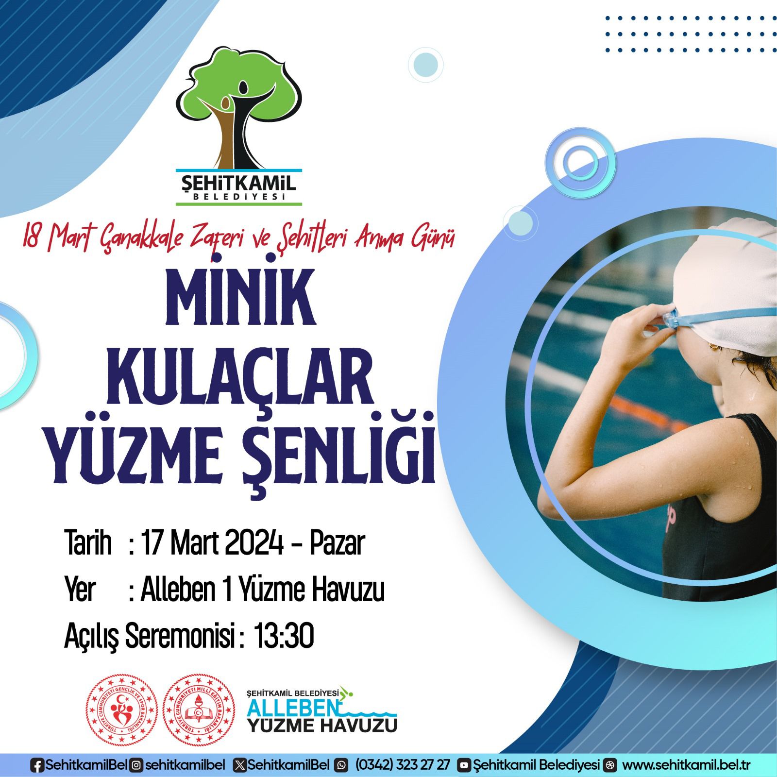 18 Mart Çanakkale Zaferi ve Şehitleri Anma Günü etkinlikleri “Minik Kulaçlar Yüzme Şenliği” 17 Mart 2024″ Alleben Yüzme Havuzu